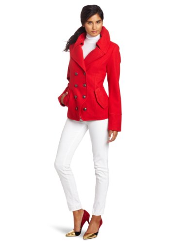D.E.P.T. Women's Classic Pea Coat, Cherry Tomato, Small