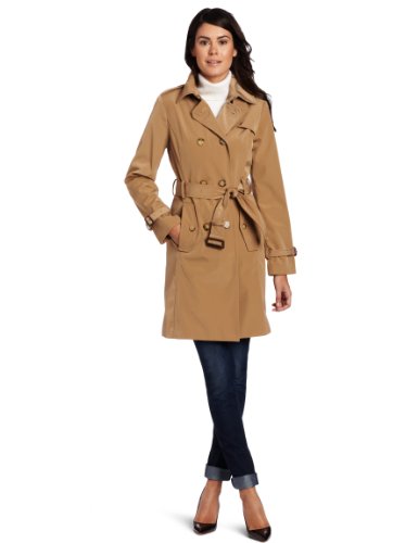 I11-Anne Klein Women's Ines Rain Coat, Khaki, Large