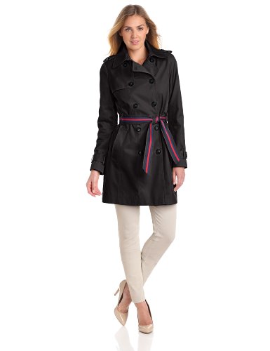 M16-Tommy Hilfiger Women's Double Breasted Trench Coat with Striped
